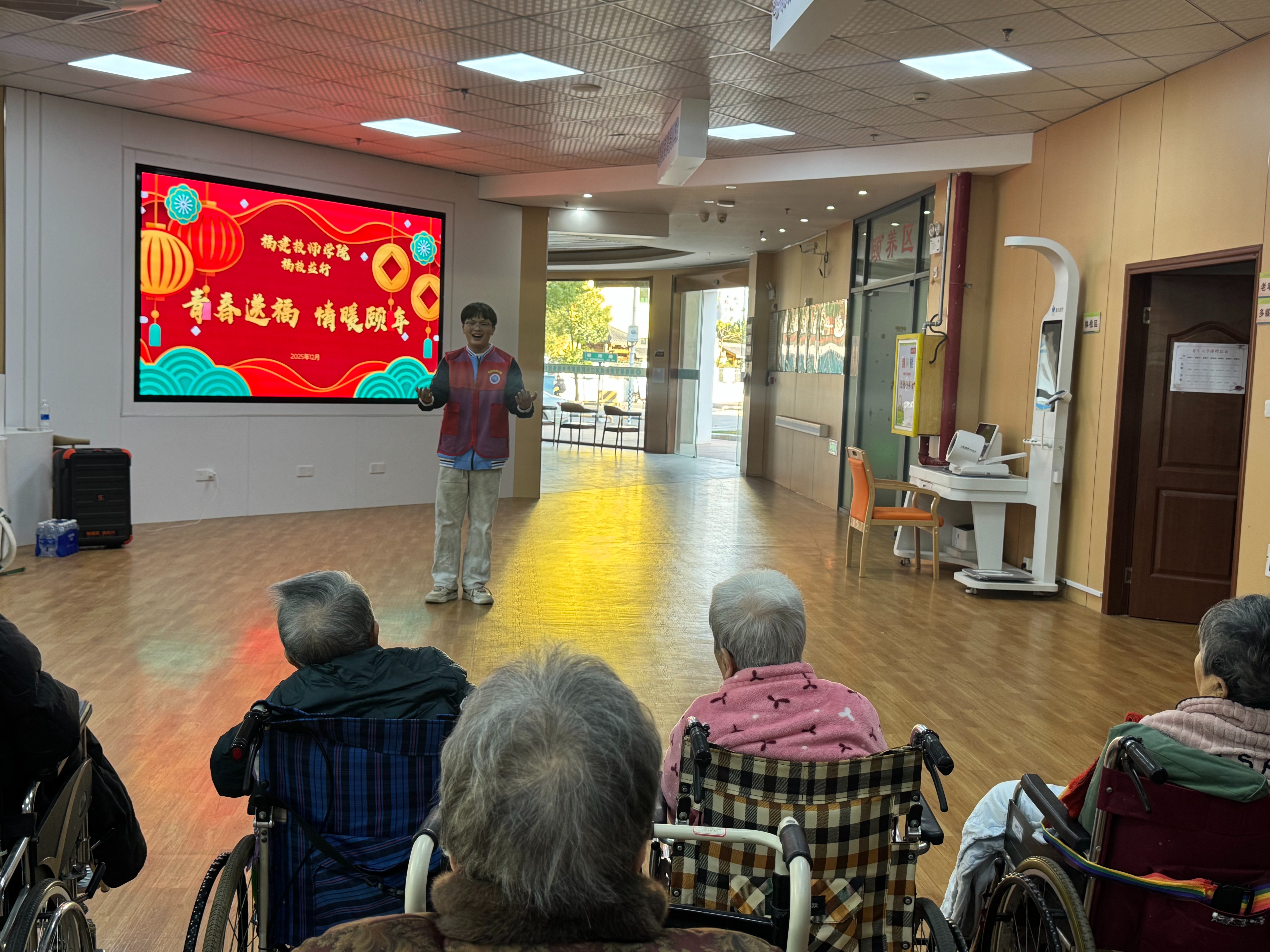 近日,我院在闽侯县甘蔗街道居家社区养老服务照料中心,组织开展了“青春送福 乐享颐年”青年志愿活动,聚焦老年群体精神文化需求,组织30余名青年志愿者以专业特长服务社会,以青春热情温暖寒冬。