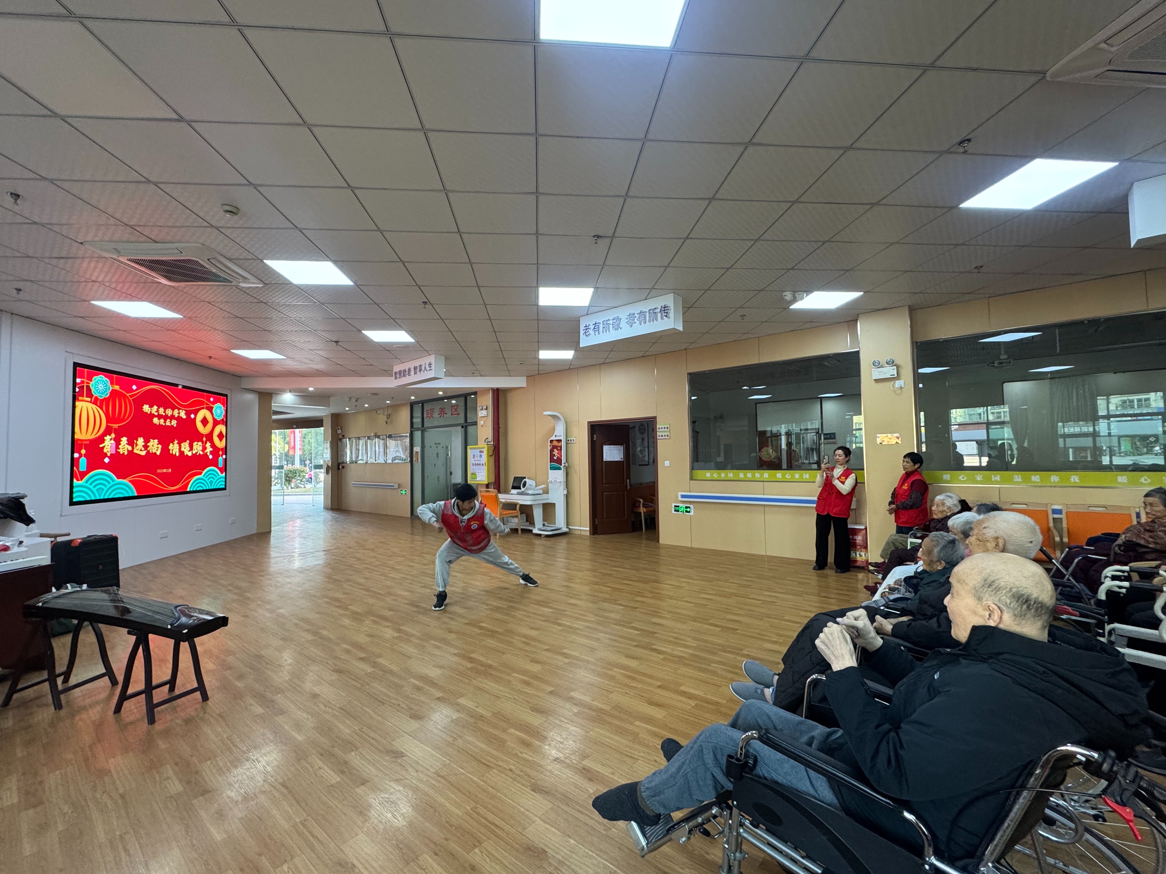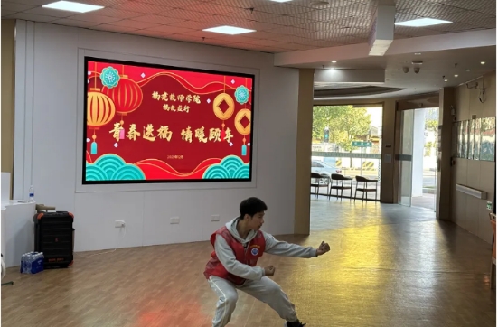 活动在精心编排的文艺表演中拉开序幕。从悠扬婉转的萨克斯演奏到活力四射的青春舞蹈,再到行云流水的中国武术表演,志愿者们的才艺展示为老人们带来了视听盛宴。老人们专注欣赏,不时随着熟悉的旋律轻声哼唱、拍手应和,脸上洋溢着幸福笑容。